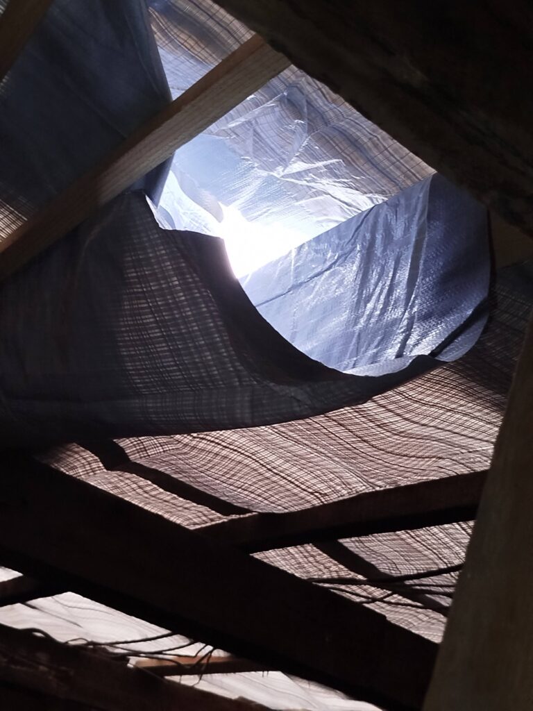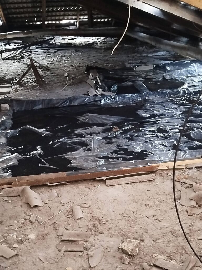 Поки триває тендер на заміну покрівлі, КП Запоріжремсервіс поклав на тимчасові балки якусь тканину, але її вистачило лише на три тижні. Прийшли перед новим роком сніги, а потім дощі, тканина розійшлось і зараз під’їзд тупо заливає. Ллє у нас на кухні, ллє у сусідів і навіть до третього поверху доливає, – написав Сергій Сидоров.
