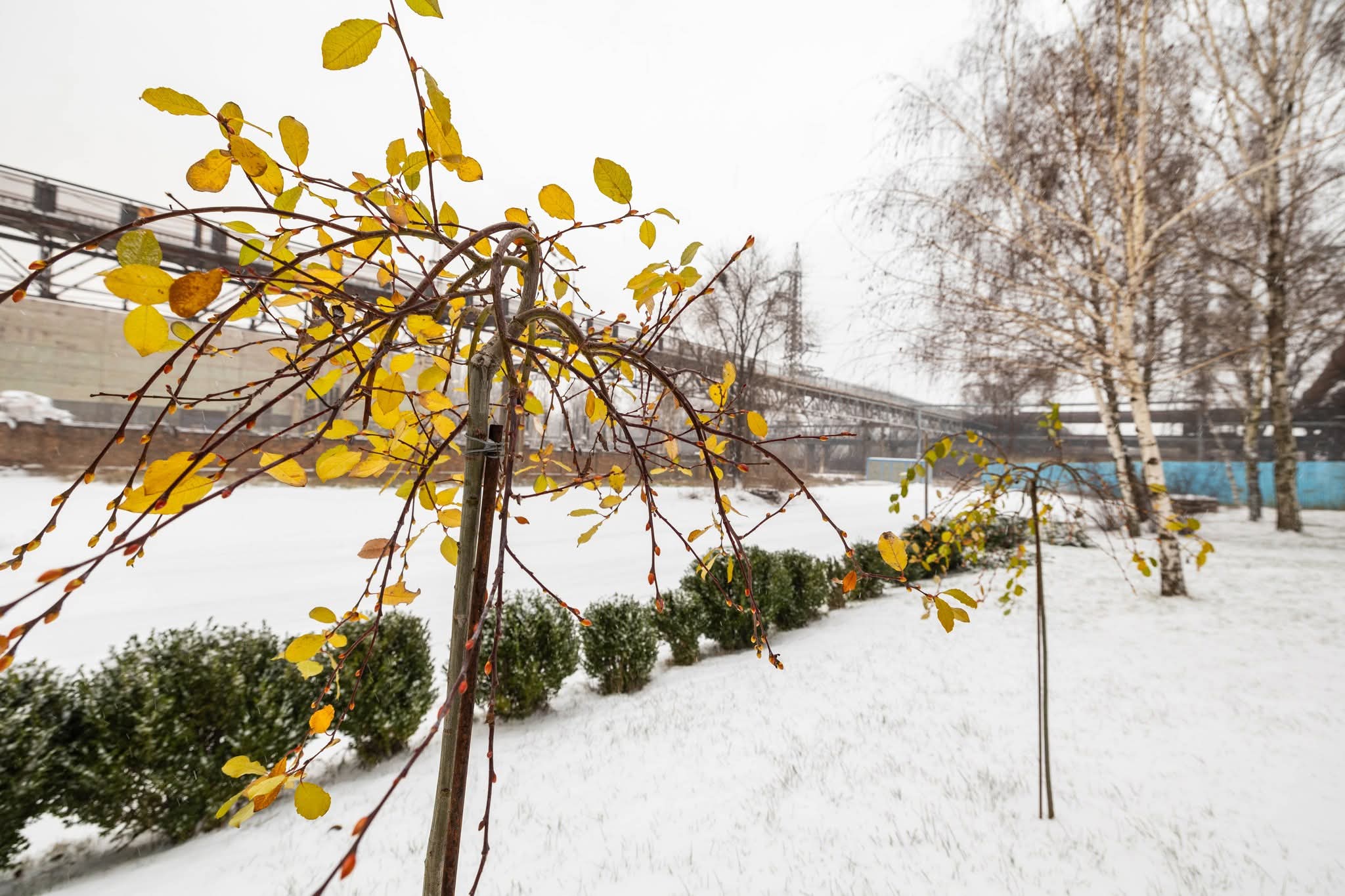 Сніг пом’якшив суворі лінії сталі та бетону, додав світла й гарного настрою.