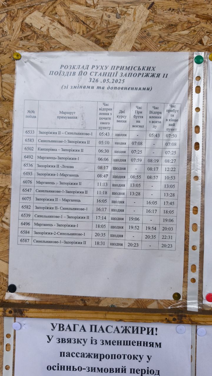 Нижче публікуємо актуальний розклад руху поїздів по станції Запоріжжя-2.