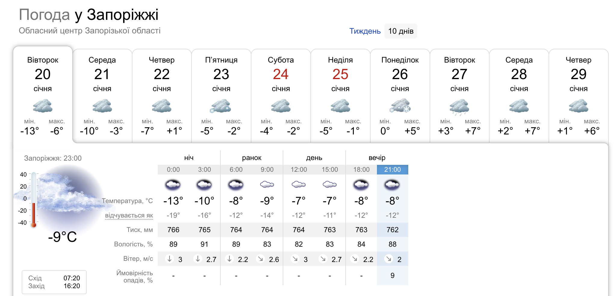 У Запоріжжі найближчими днями збережеться морозна погода, однак уже наприкінці січня синоптики прогнозують різке потепління та перехід температури до плюсових значень. Погодні зміни відбудуться досить швидко — протягом кількох днів.