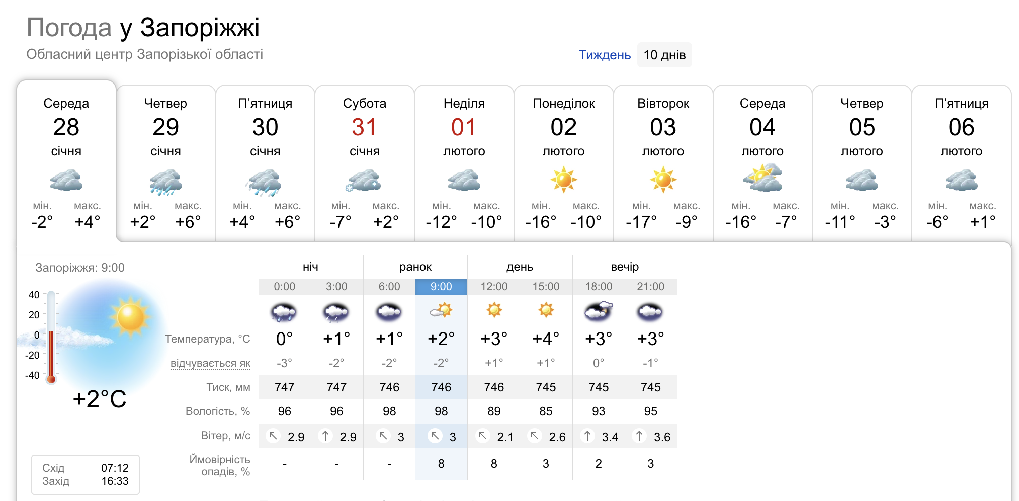 У Запоріжжі найближчими днями очікується помітне похолодання. Після відносно м’якої погоди наприкінці січня місто та область поступово увійдуть у фазу справжніх зимових морозів, які посиляться на початку лютого.