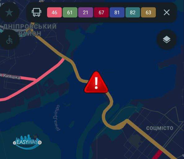 За даними Easy Way було перекритор рух ДніпроГЕСом. Чи повязано це з атакою дронів, поки не відомо.