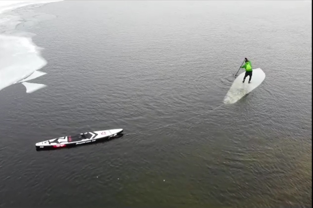 Запорожец сплавился по Днепру на SUP-доске из льда (ВИДЕО)