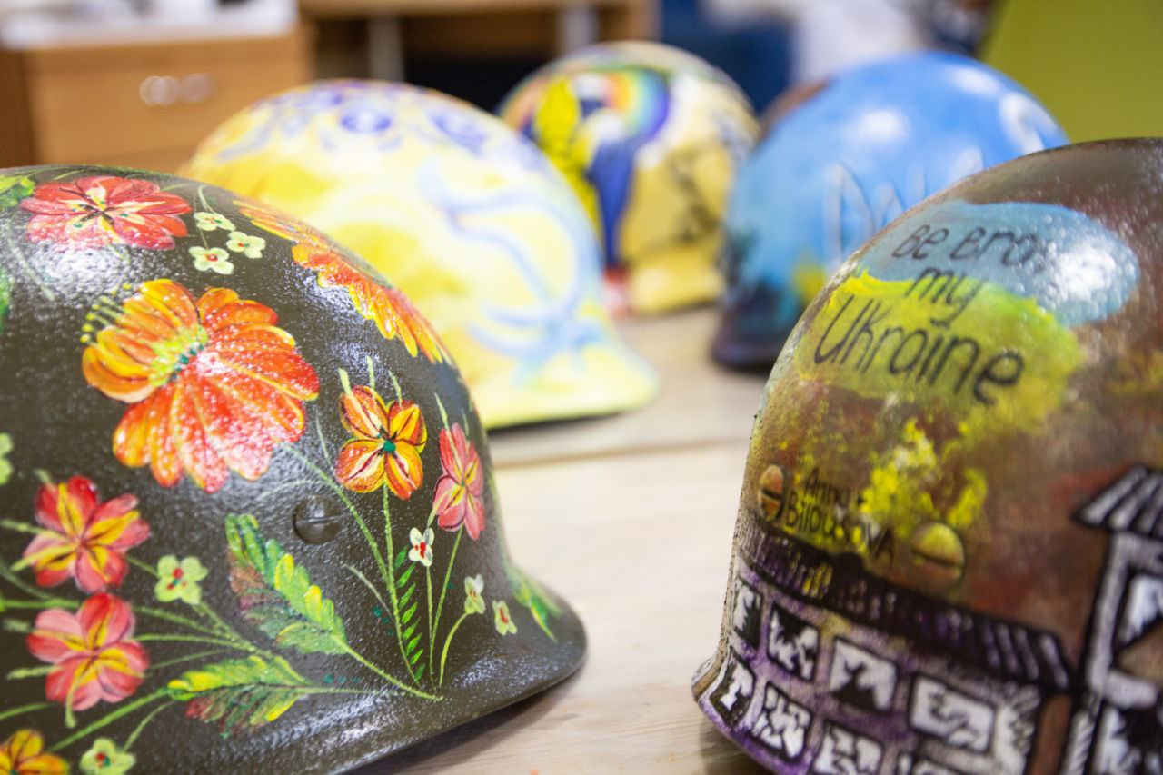 Запорожские художницы расписали военные каски, которые продадут на аукционе (ФОТО)