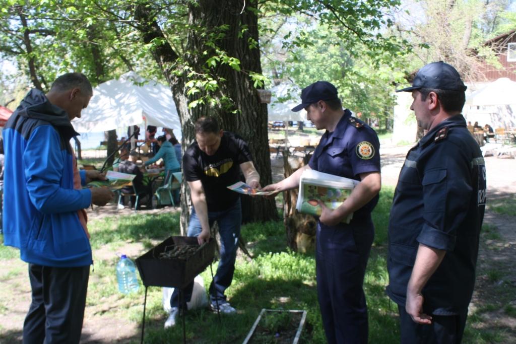 В первый день длинных выходных бойцы ГСЧС провели профилактчиеские беседы с отдыхающими и посетителями о. Хортица.