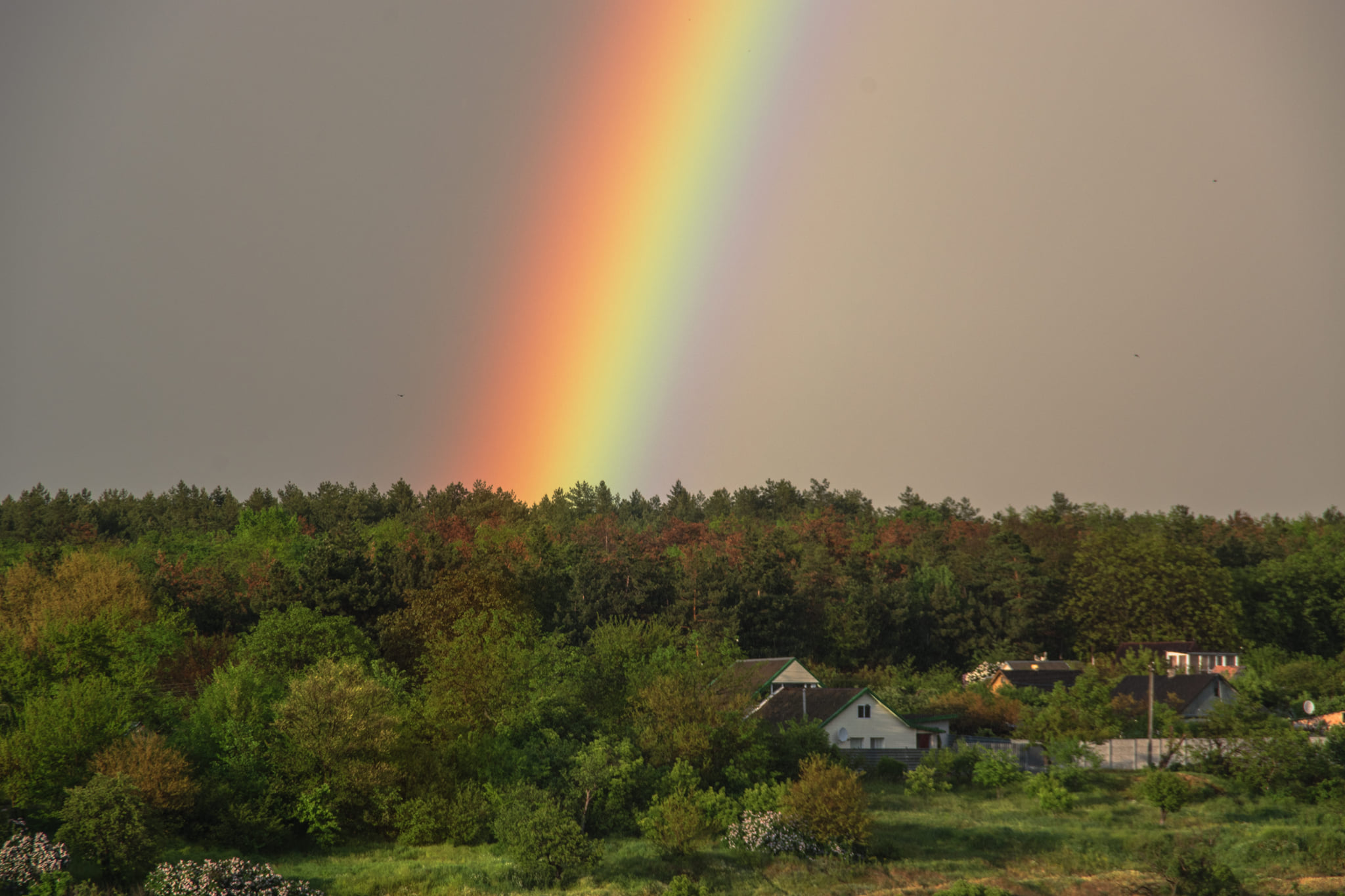Вчера, 19 мая, в Запорожье выпал дождь, за которым в небо взошла удивительно цельная радуга.
