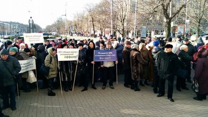 Этим утром, несмотря на холод и ветер, сотни запорожцев пришли под стены городского совета, чтобы выразить свое недовольство политикой местной власти в сфере ЖКХ. Организатором данной акции протеста стала Любовь Карпенко из организации “Круг”.