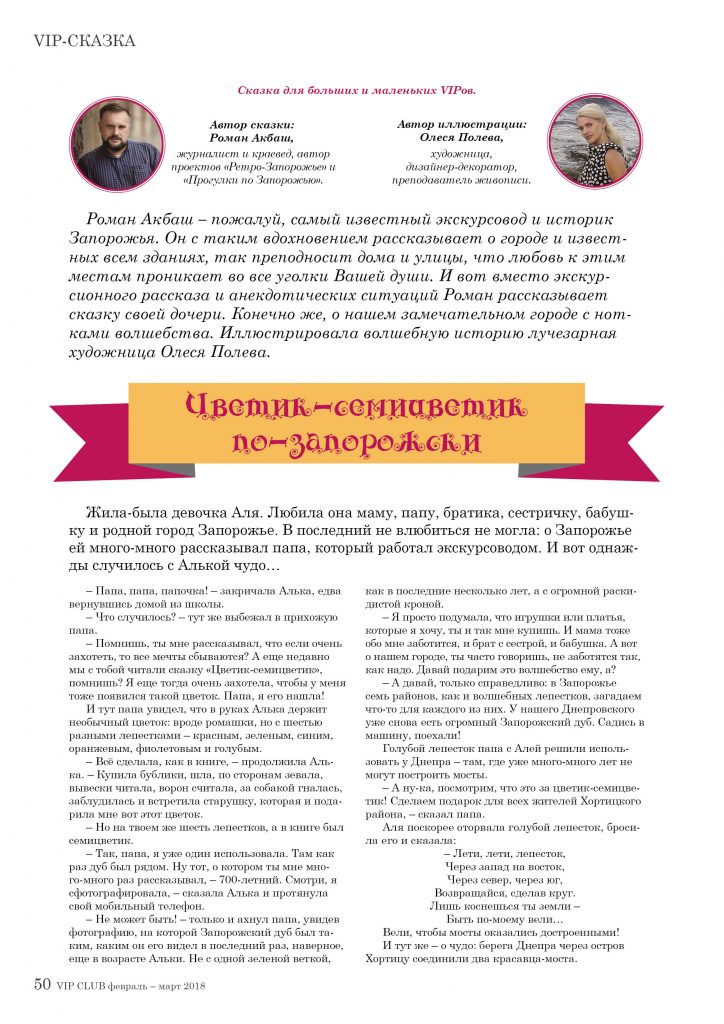 Известный экскурсовод рассказал, что год назад журналисты “VIP Club” попросили его написать сказку о городе: “В прошлом году весьма неожиданно предложили написать сказку. Не простую, а чтобы ещё и о любимом Городе. В итоге получилась эдакая современная фантазия по мотивам любимой в детстве сказки “Цветик-семицветик”.