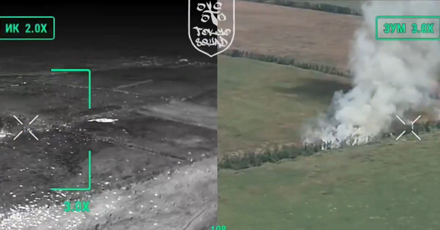 Зокрема, наші бійці опублкували відео, як випалюють росіян у лісосмузі під Малинівкою за допомогою “дрона-дракона”. Це та сама зона, в якій росіяни мали просування днями.