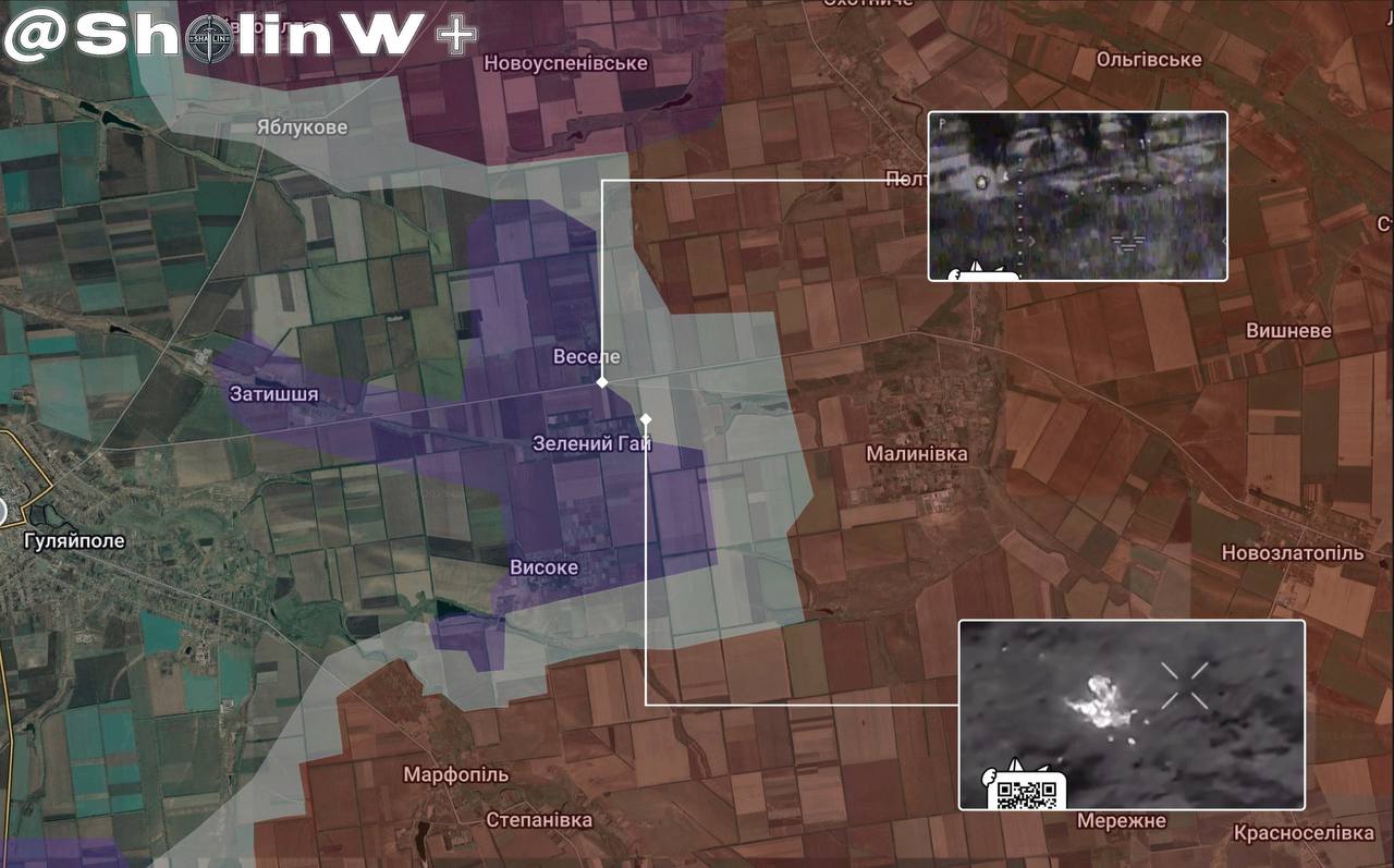 Росіяни не припиняють штурмові дії в напрямку Гуляйполя, намагаючись підійти впритул до міста. Українські захисники дронами знищують малі піхотні групи ворога.