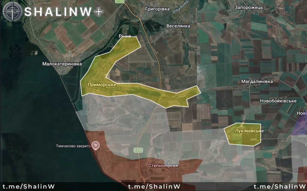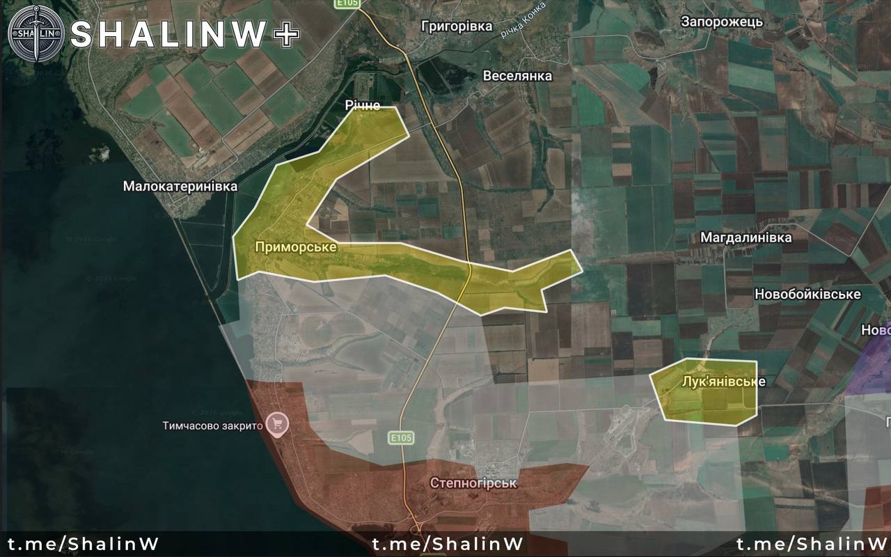ВІідомо, що україсньким військовим вдалося повінстю зачистити н.п. Лук’янівське, що північно-західніше від Степногірська, а також північну частину Приморського – це велике село, протяжністю в 10 км.