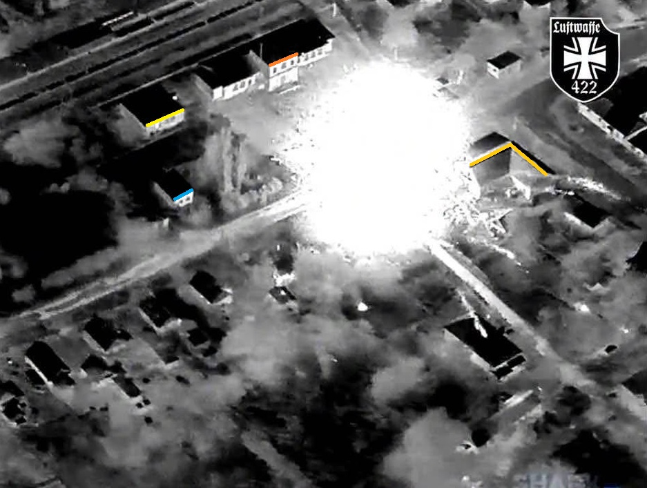 Знищення бази ворожих екіпажів БПЛА, разом з екіпажем, БПЛА і обладнанням. Ураження мідлстрайком «Зозуля». Спільна операція підрозділу ГУР і 422 LUFTWAFFE.